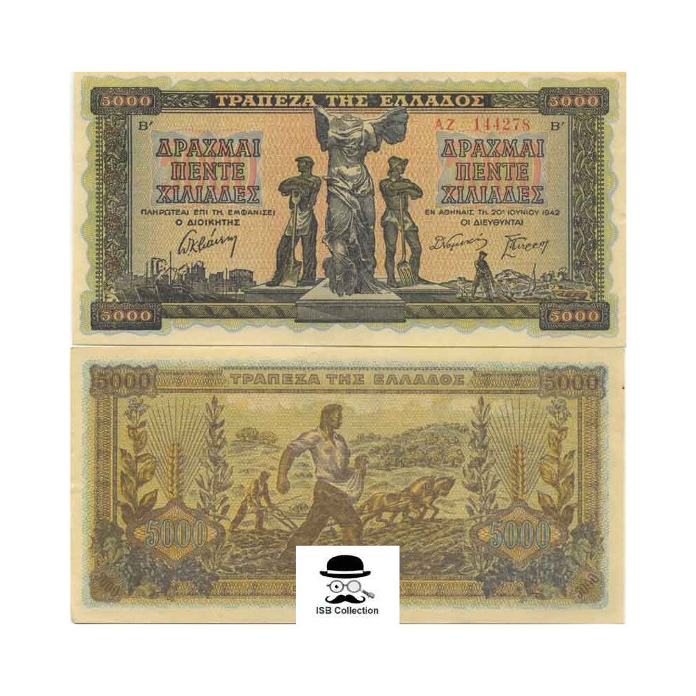 Billet de banque de grèce valeur faciale 5 000 drachmai pick 119 b-