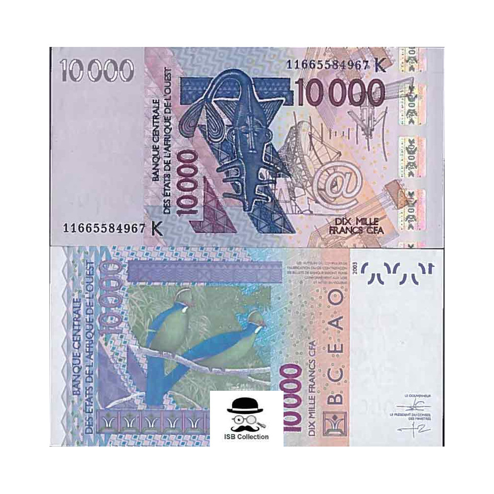 Billet de banque de afrique de l'ouest valeur faciale 10 000 francs pick 718 k-