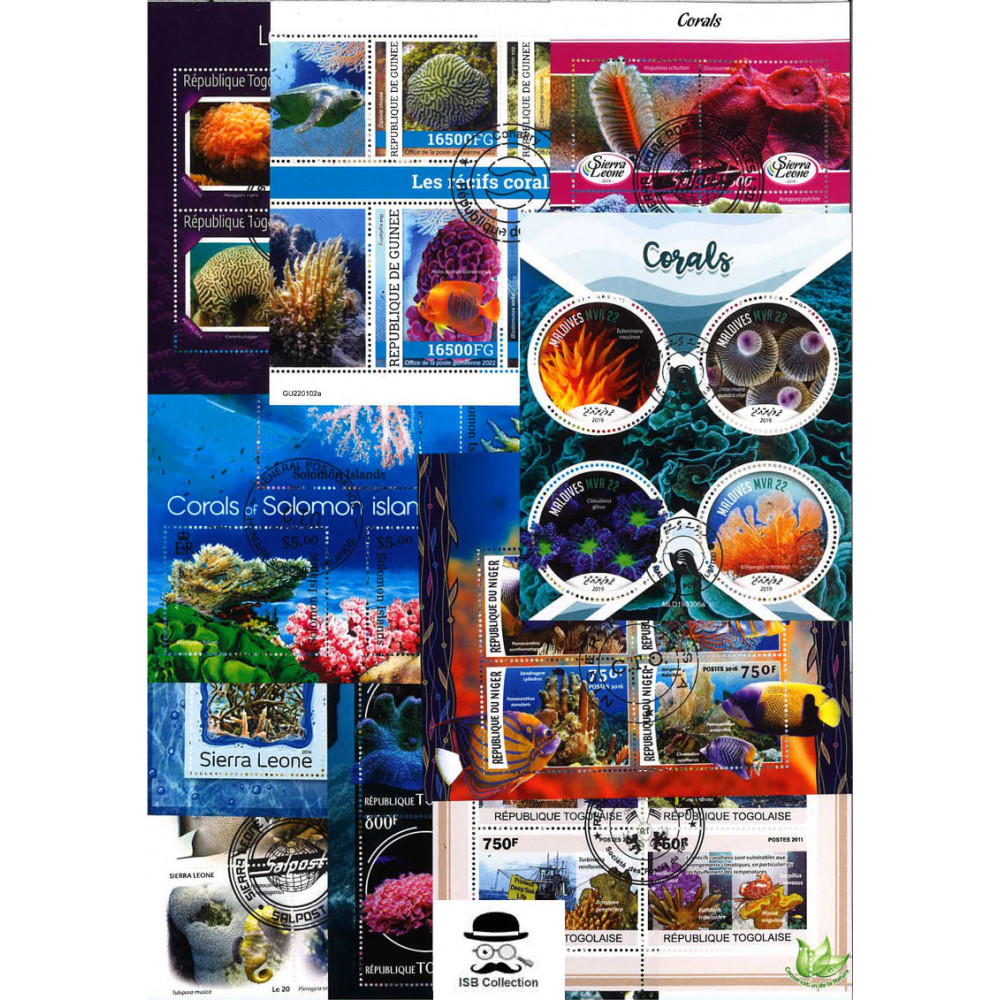 Collections de timbres poste emis en blocs feuillets représentant des coraux