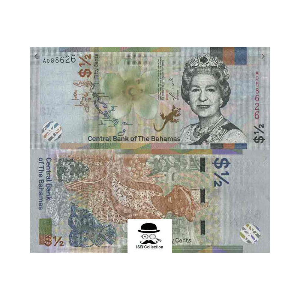 Billet de banque de bahamas valeur faciale 0,5 dollar pick 77 wa-