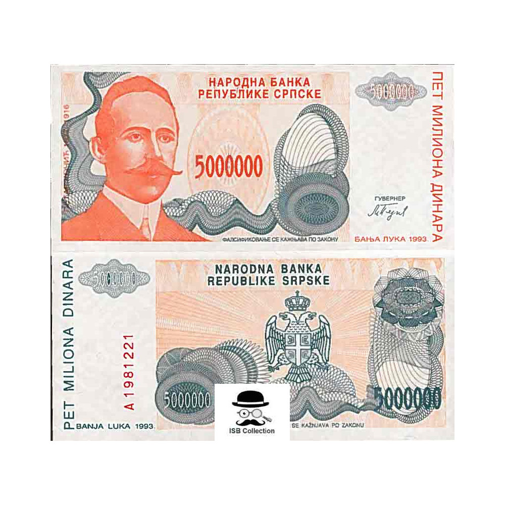 Billet de banque de bosnie valeur faciale 5 millions dinara pick 156 -