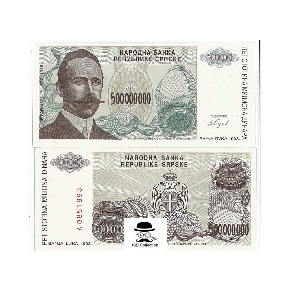 Billet de banque de bosnie valeur faciale 500 millions dinara pick 158 -
