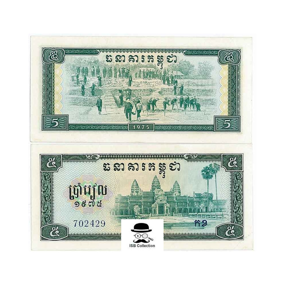 Billet de banque de cambodge etat valeur faciale 5 riels pick 21 -