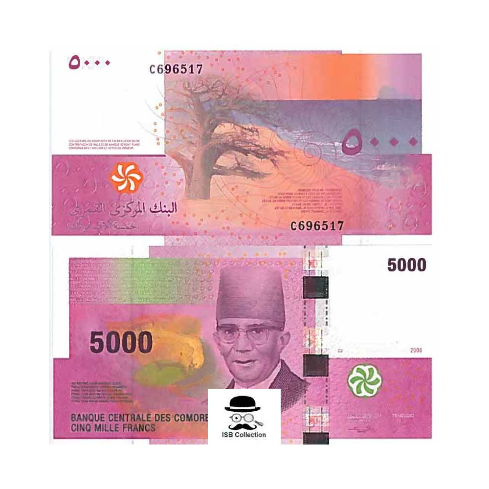 Billet de banque de comores valeur faciale 5 000 francs pick 18 -