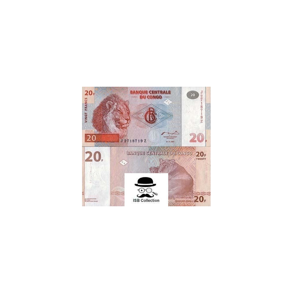 Billet de banque de congo valeur faciale 20 francs pick 88 a-