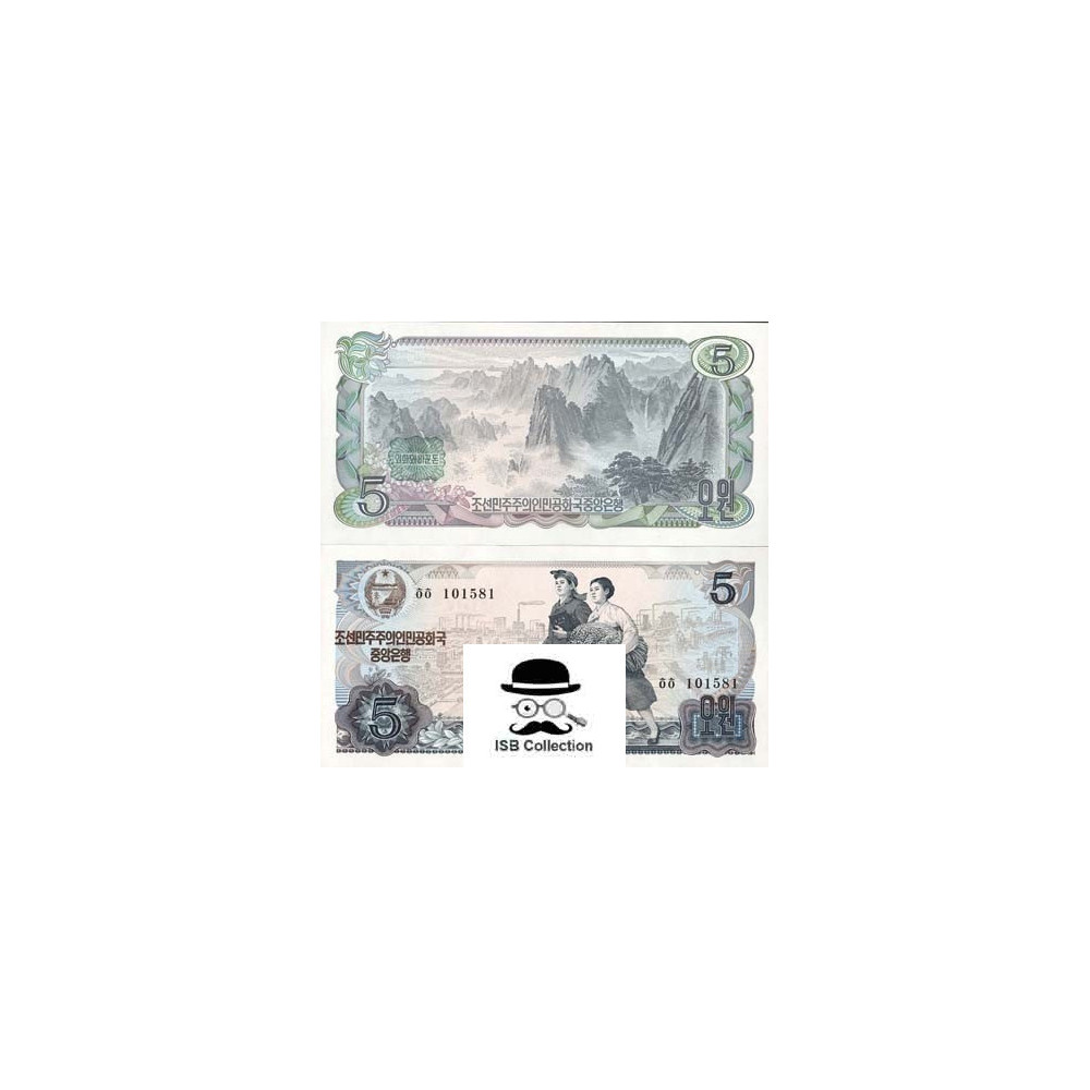 Billet de banque de corée nord valeur faciale 5 won pick 19 c-