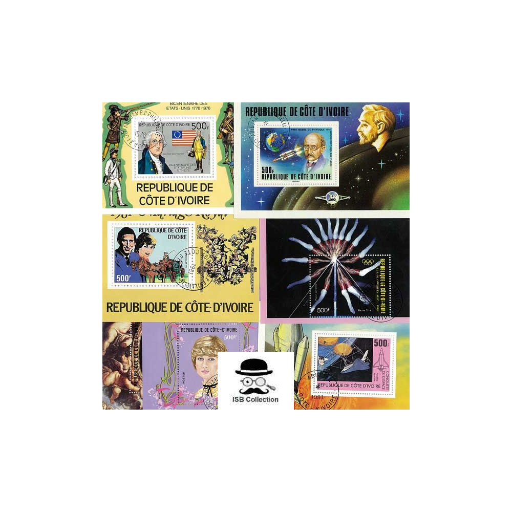 Collection de timbres poste en blocs feuillets de côte d'ivoire