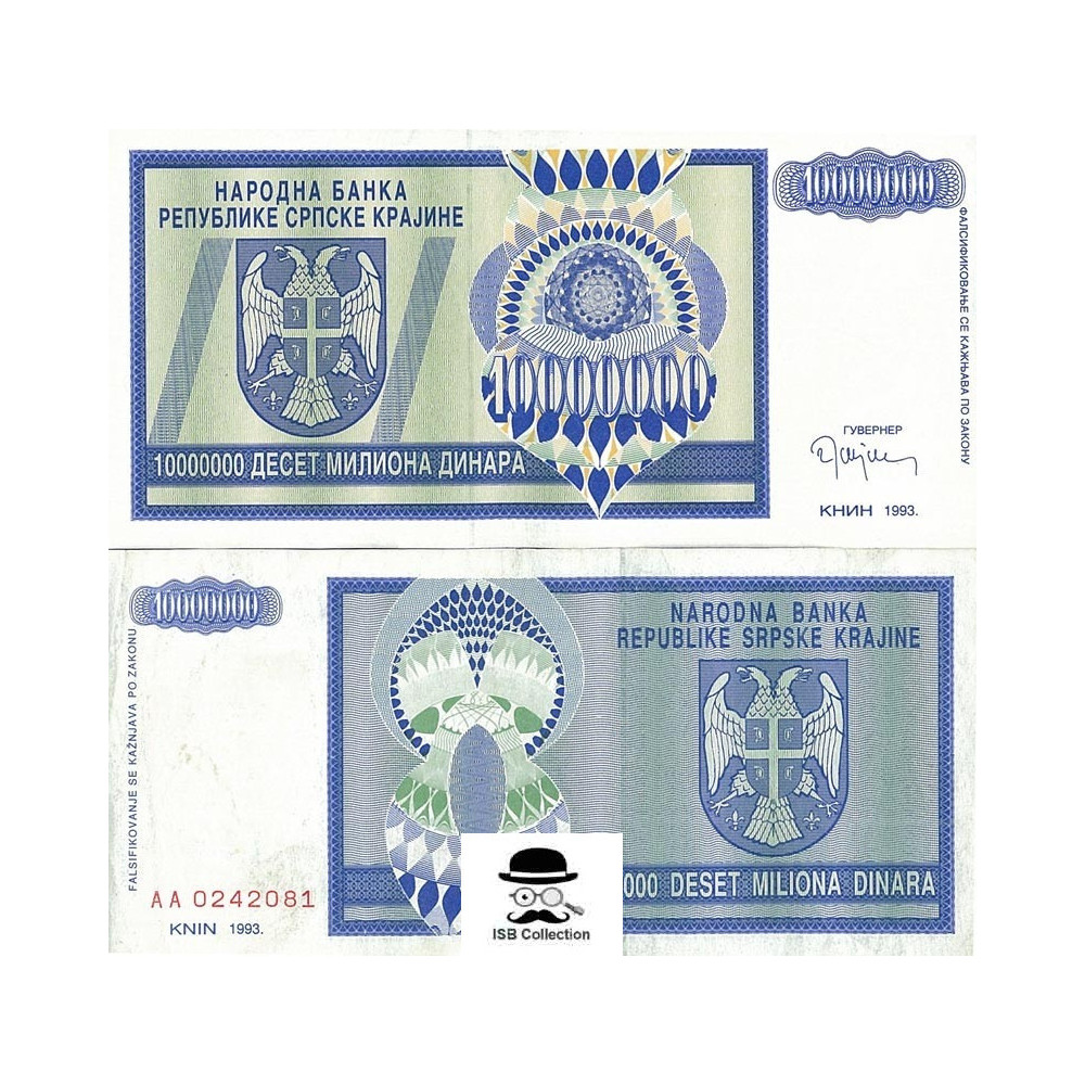 Billet de banque de croatie (serbie) valeur faciale 10 millions dinara pick 12 r-