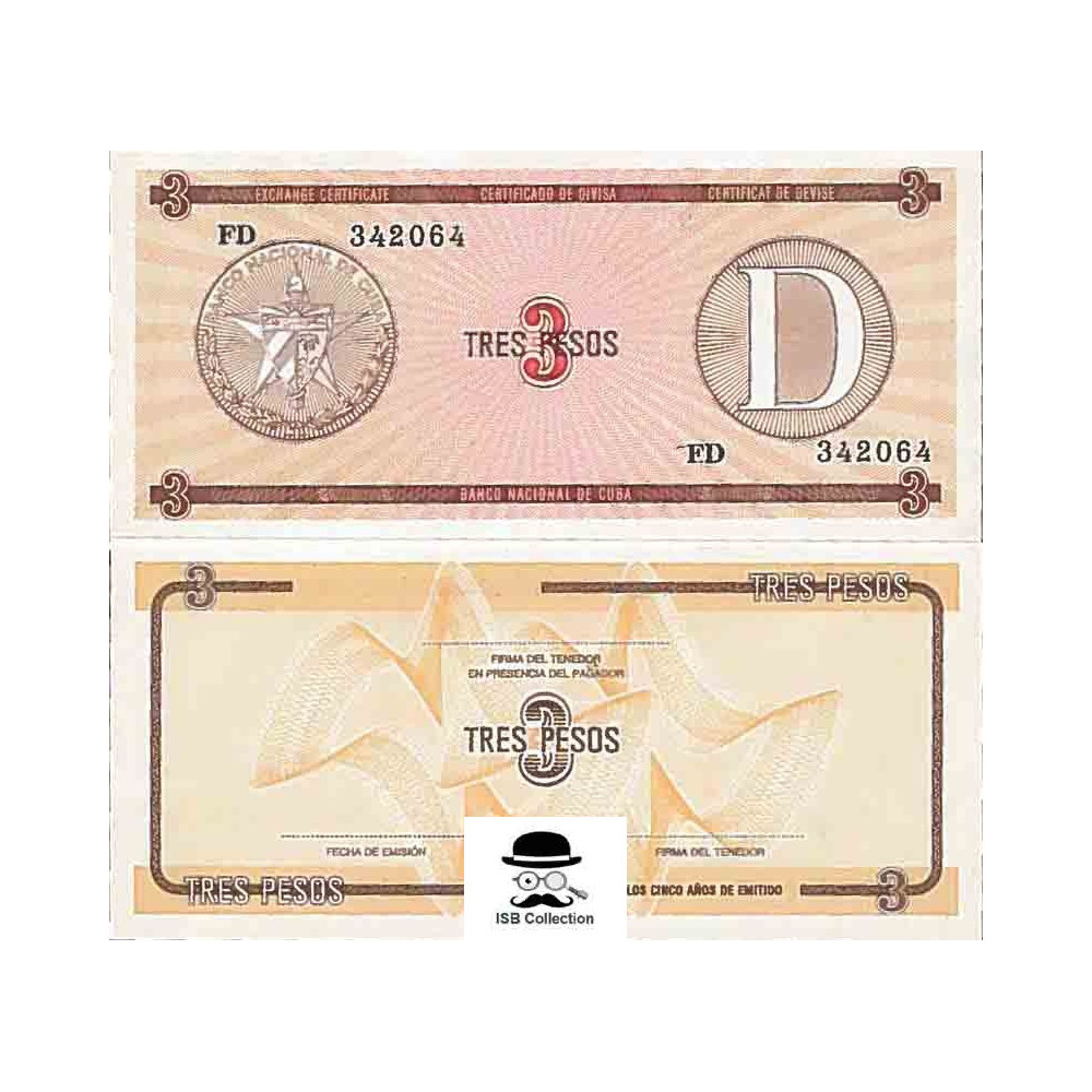 Billet de banque de cuba valeur faciale 3 pesos pick 33 fx-