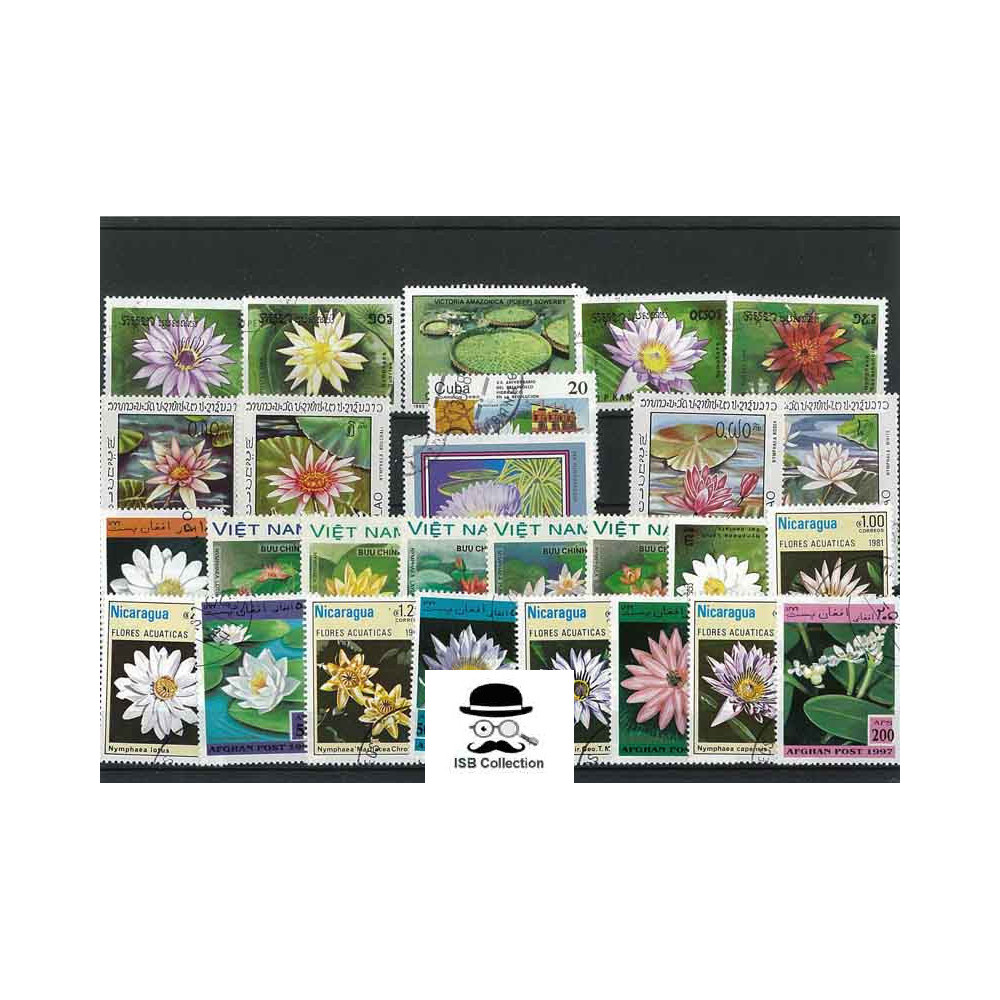 Collection de timbres poste nénuphars & plantes aquatiques