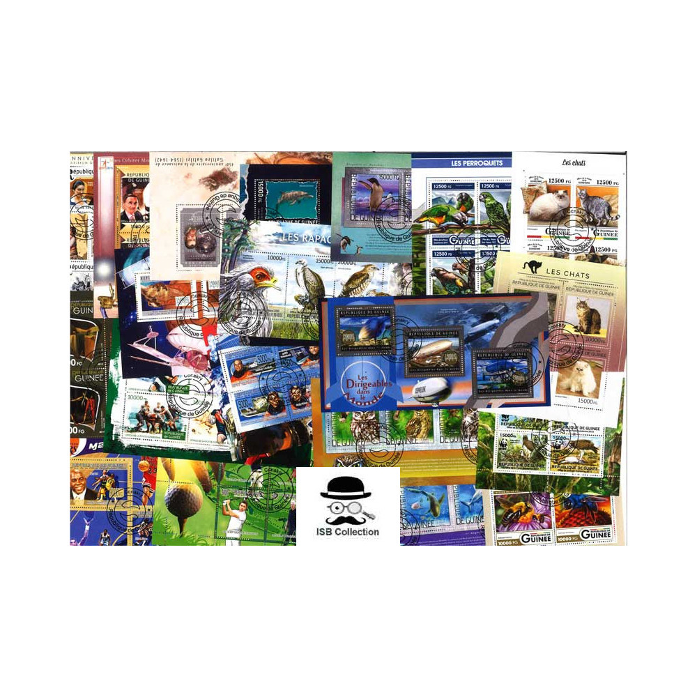 Collection de timbres poste en blocs feuillets de guinée française