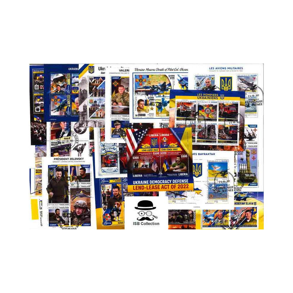 Collection de timbres poste en blocs feuillets sur la guerre en ukraine
