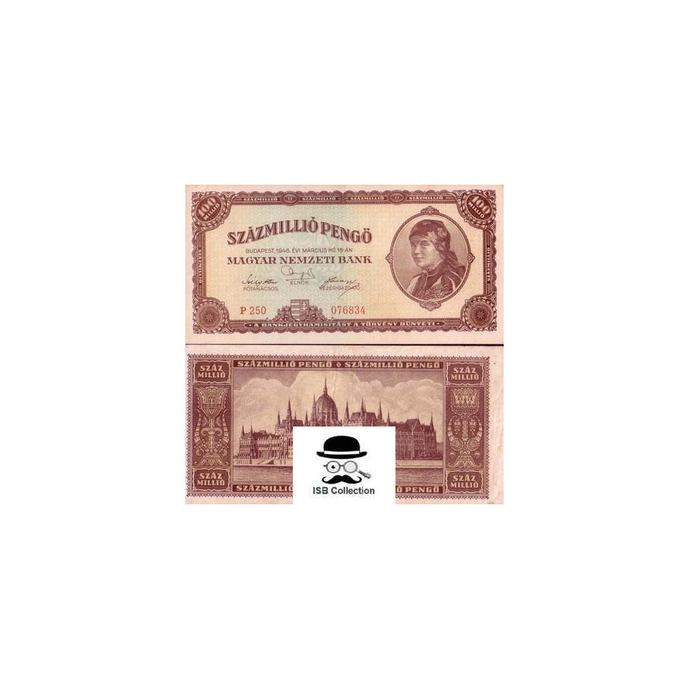 Billet de banque de hongrie valeur faciale 100 millions pengo pick 124 -