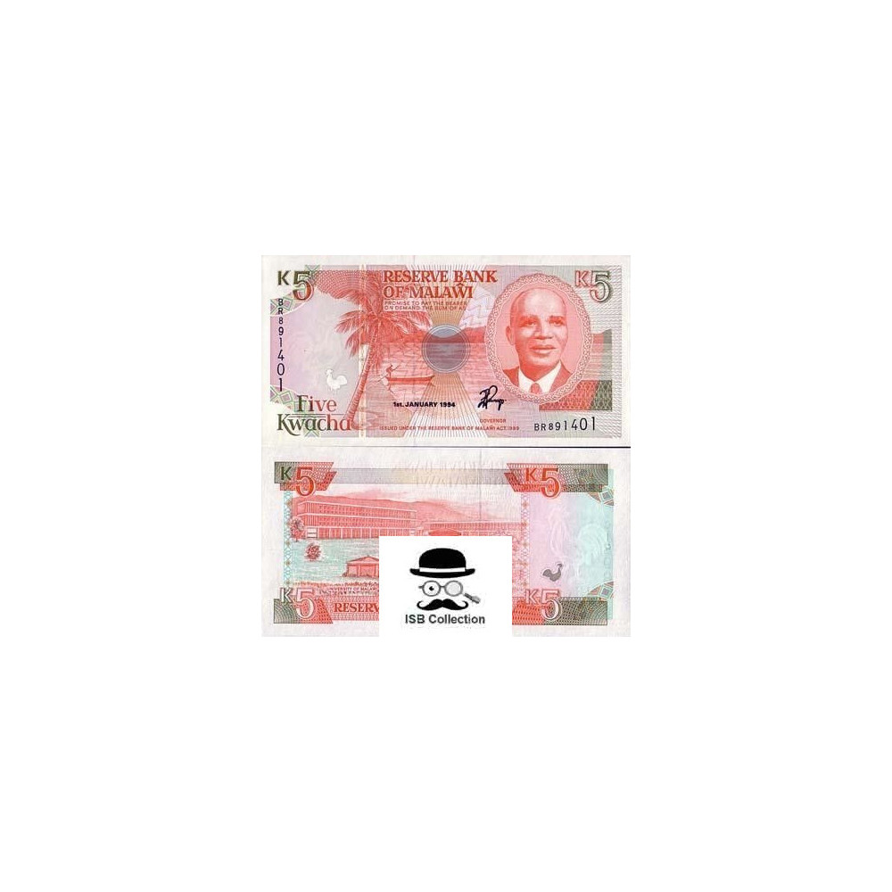 Billet de banque de malawi valeur faciale 5 kwacha pick 24 b-