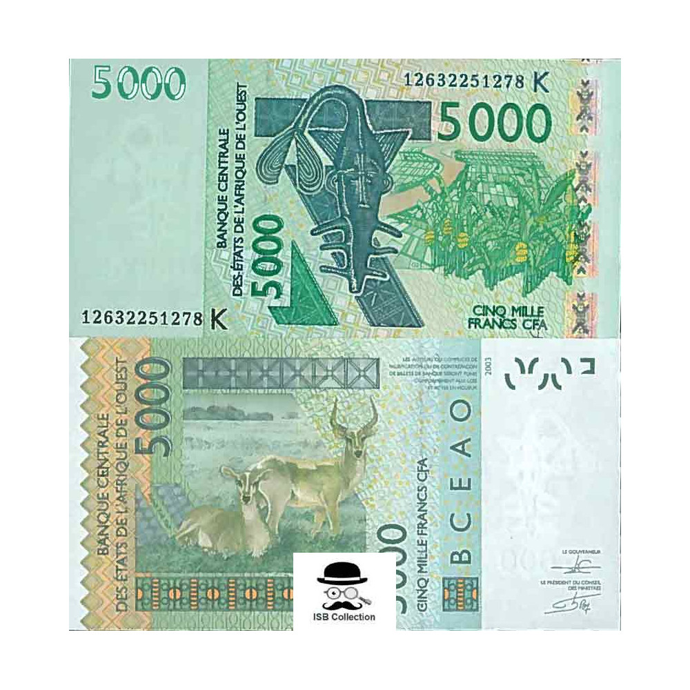 Billet de banque de afrique de l'ouest valeur faciale 5 000 francs pick 717 k-