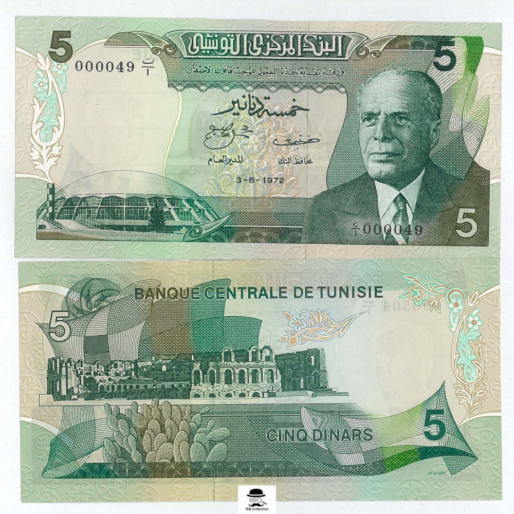 Billet de banque de tunisie valeur faciale 5 dinar pick 68 -
