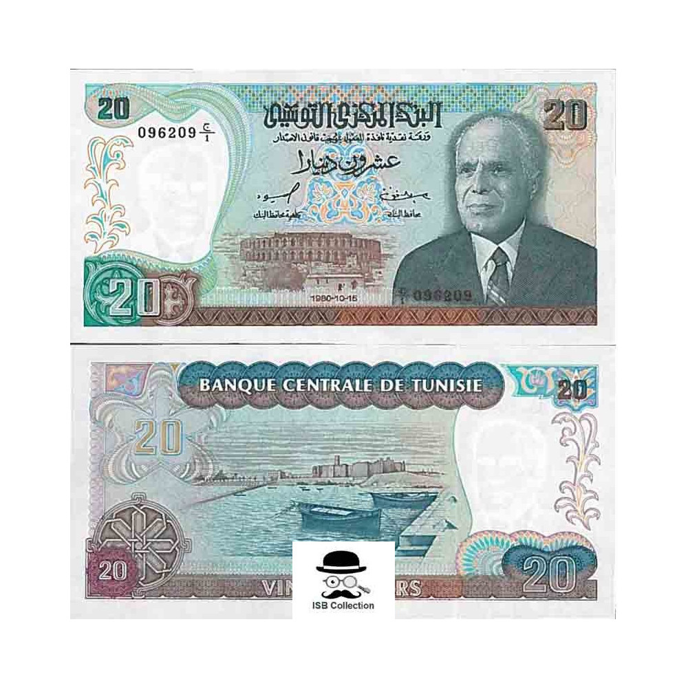 Billet de banque de tunisie valeur faciale 20 dinars pick 77 -