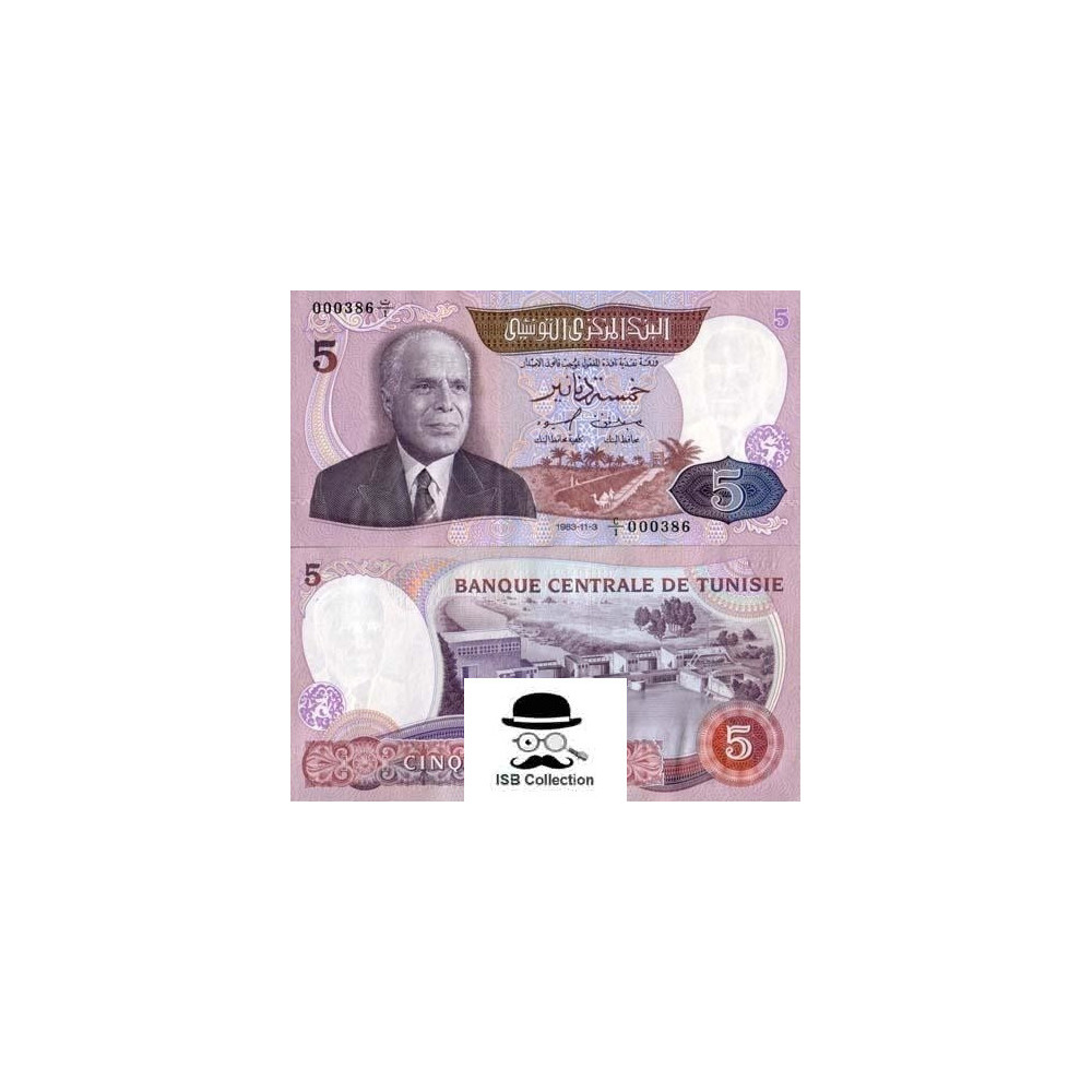 Billet de banque de tunisie valeur faciale 5 dinar pick 79 -