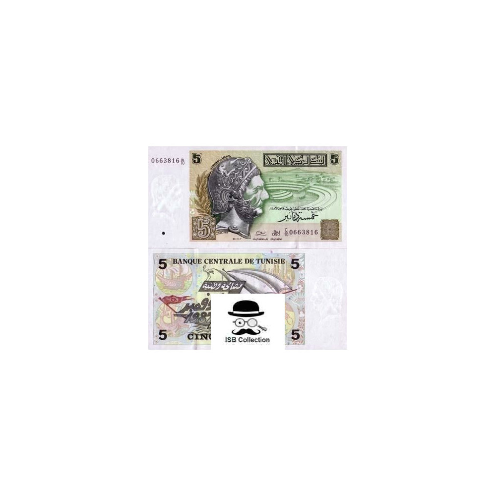 Billet de banque de tunisie valeur faciale 5 dinar pick 86 -