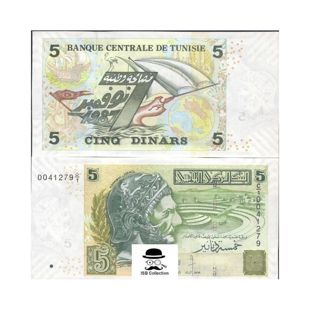 Billet de banque de tunisie valeur faciale 5 dinars pick 92 -
