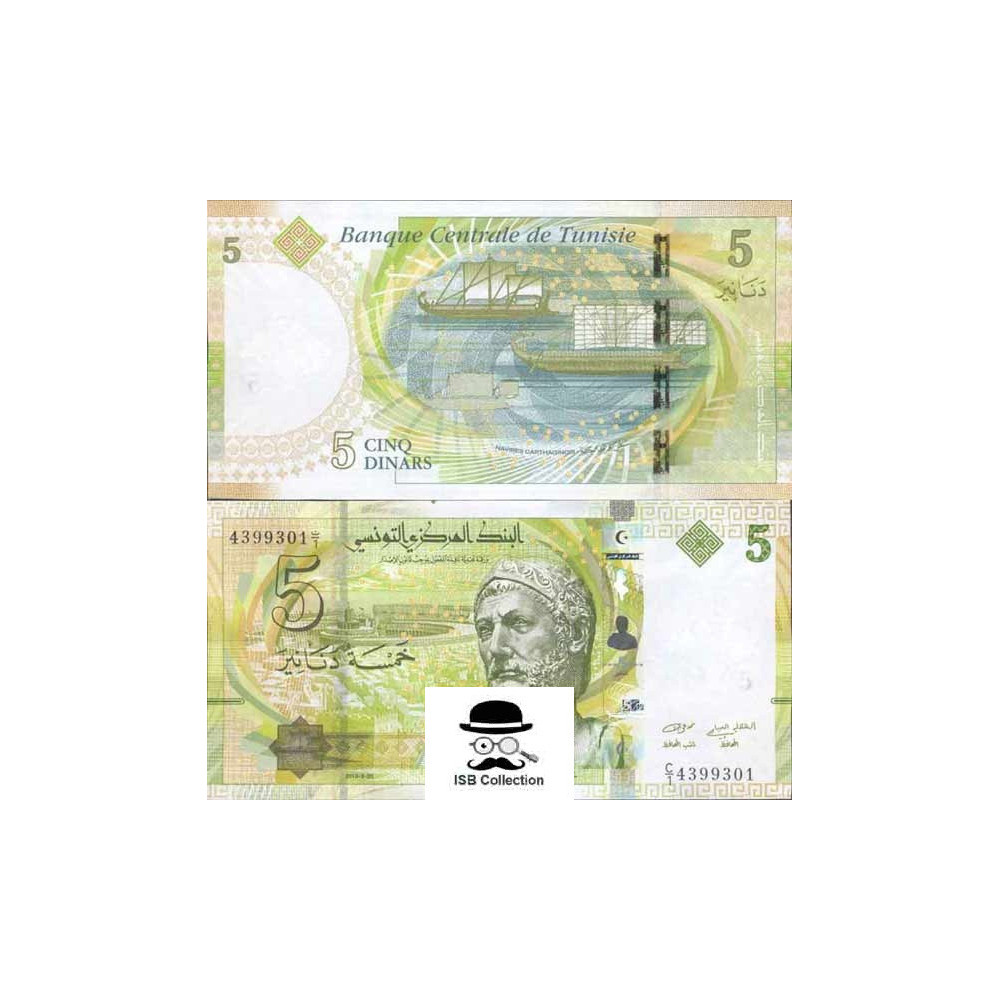 Billet de banque de tunisie valeur faciale 5 dinars pick 95 -