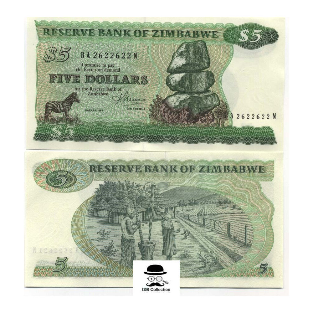 Billet de banque de zimbabwe valeur faciale 5 dollars pick 2 -