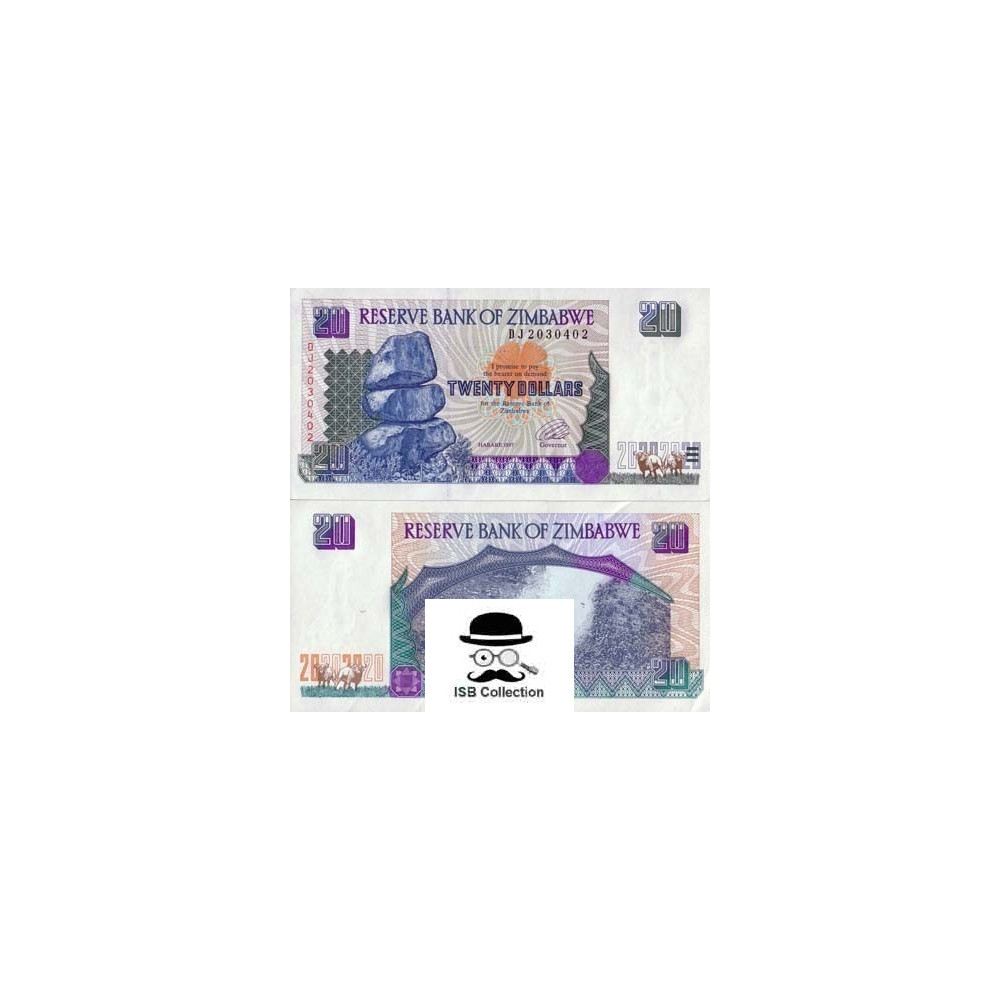Billet de banque de zimbabwe valeur faciale 20 dollars pick 7 -