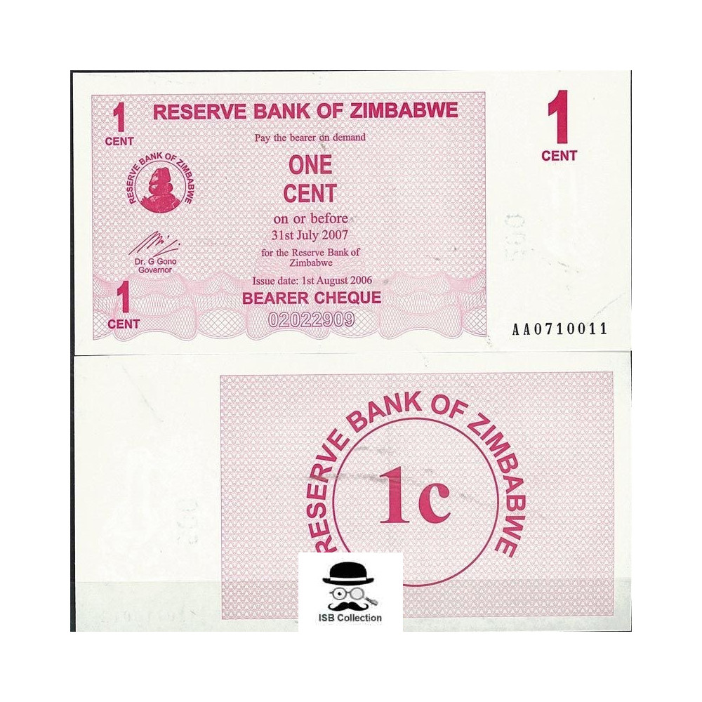 Billet de banque de zimbabwe valeur faciale 1 cent bearer pick 33 -