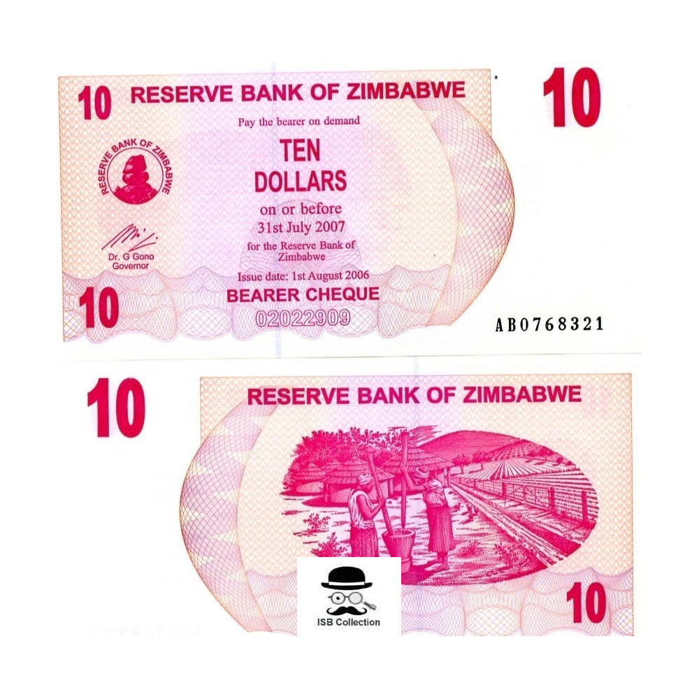 Billet de banque de zimbabwe valeur faciale 10 dollars bearer pick 39 -