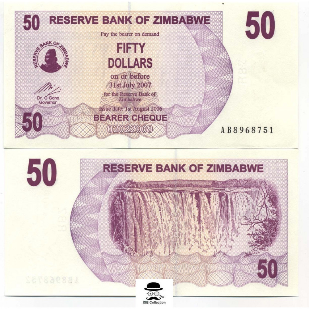 Billet de banque de zimbabwe valeur faciale 50 dollars bearer pick 41 -