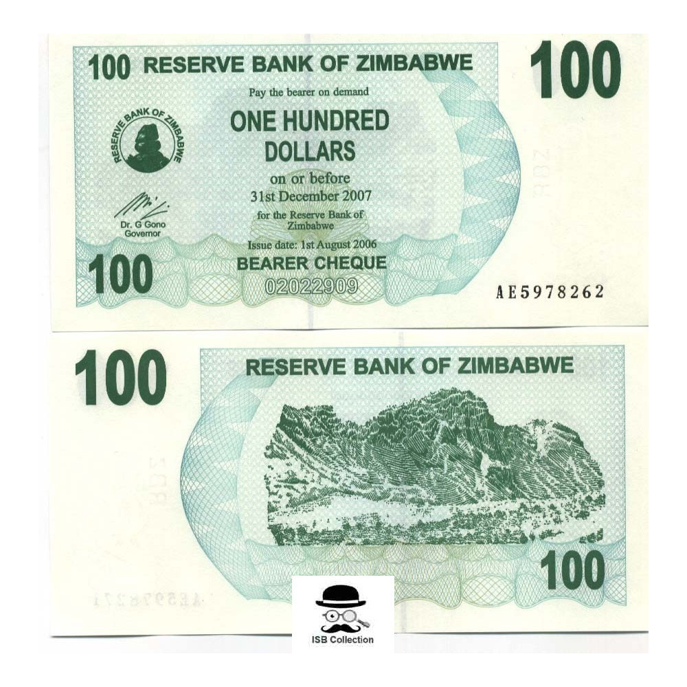 Billet de banque de zimbabwe valeur faciale 100 dollars bearer pick 42 -
