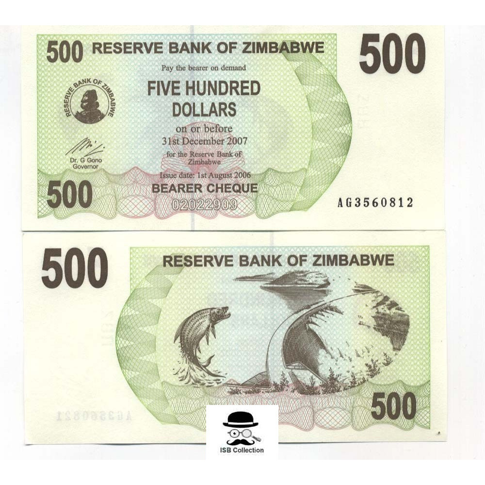 Billet de banque de zimbabwe valeur faciale 500 dollars bearer pick 43 -