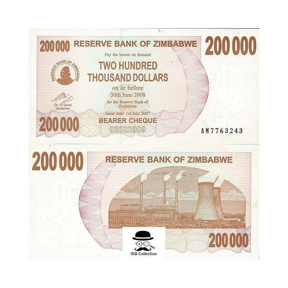 Billet de banque de zimbabwe valeur faciale 200 000 dollars bearer pick 49 -
