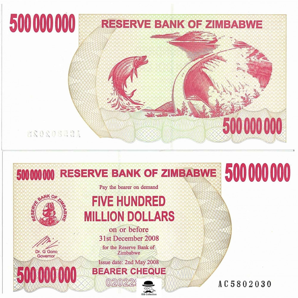 Billet de banque de zimbabwe valeur faciale 500 millions dollars bearer pick 51 -