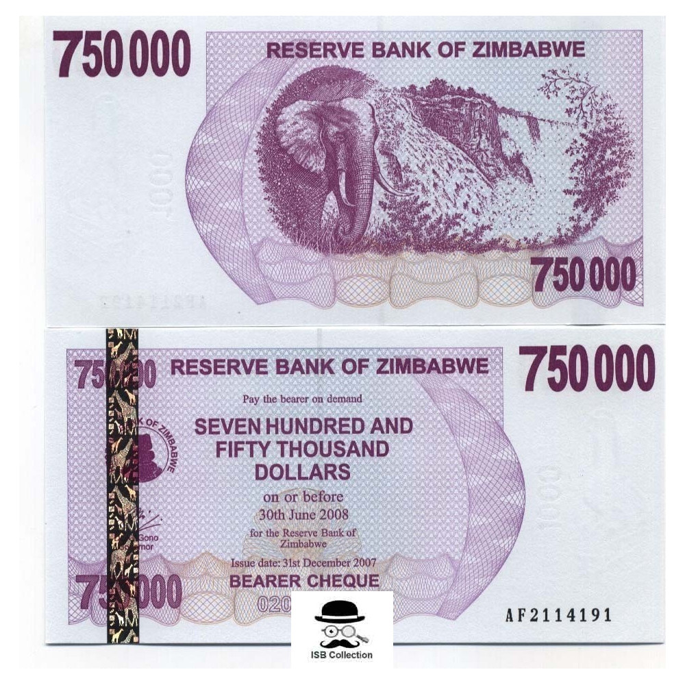 Billet de banque de zimbabwe valeur faciale 750 000 dollars bearer pick 52 -