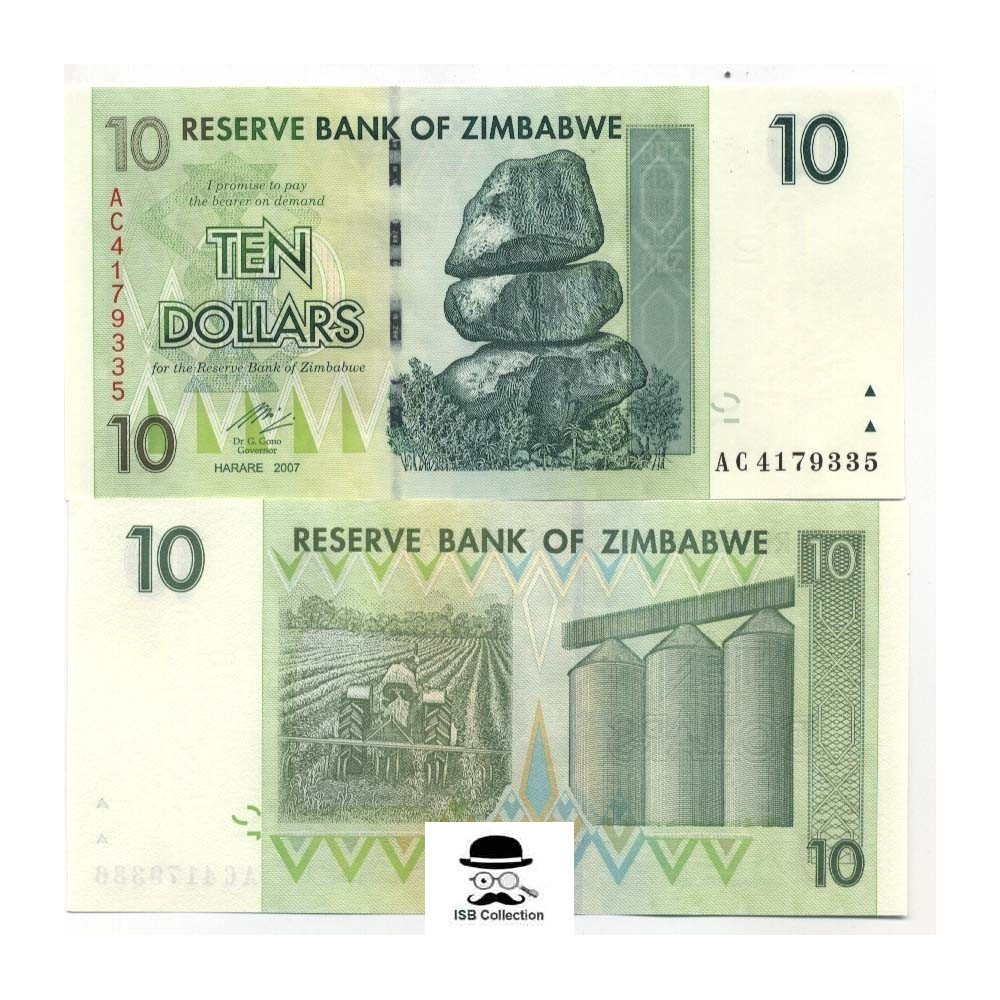 Billet de banque de zimbabwe valeur faciale 10 dollars pick 67 -