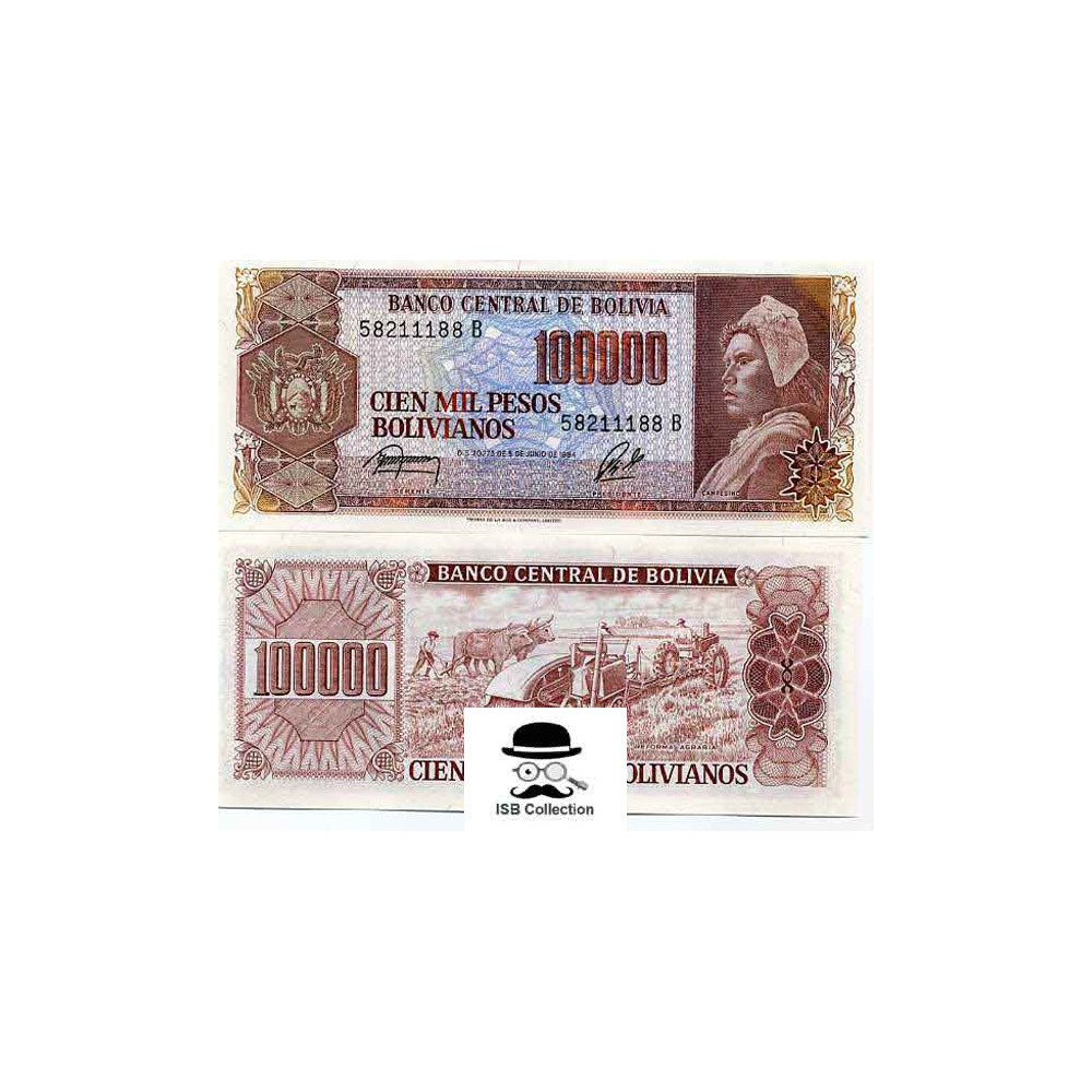 Billet de banque de bolivie valeur faciale 100 000 pesos pick 171 -