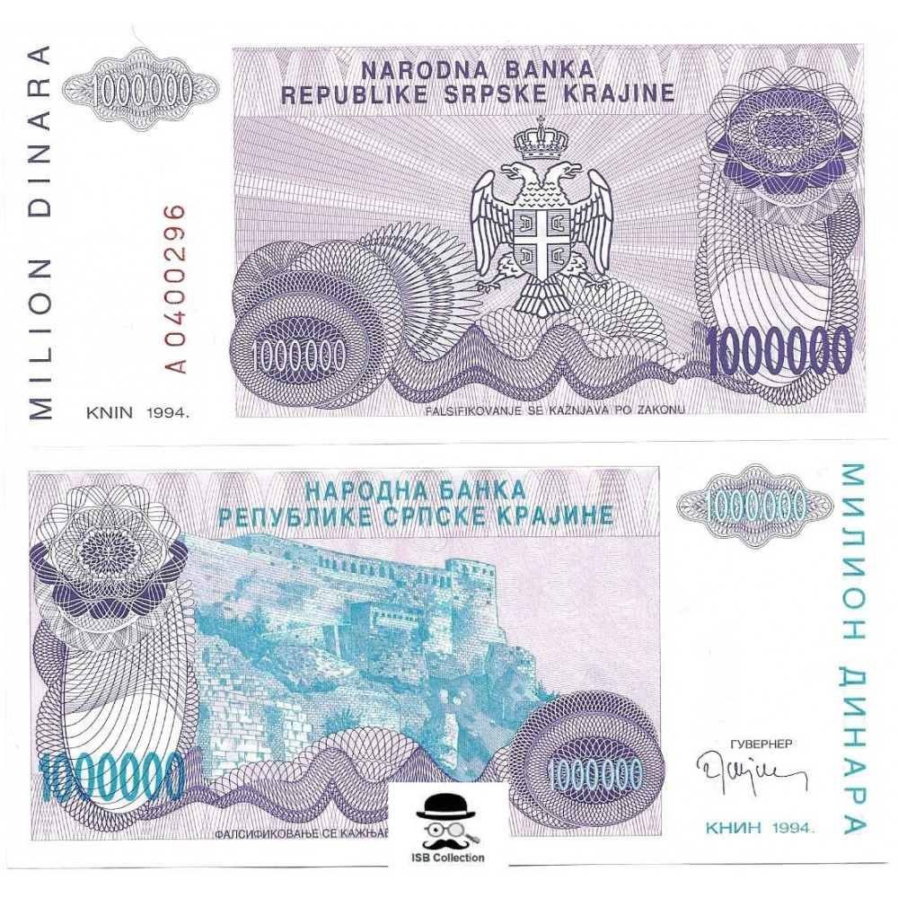 Billet de banque de croatie (serbie) valeur faciale 1 million dinara pick 33 r-