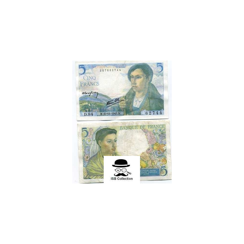 Billet de banque de france valeur faciale 5 francs pick 98 -