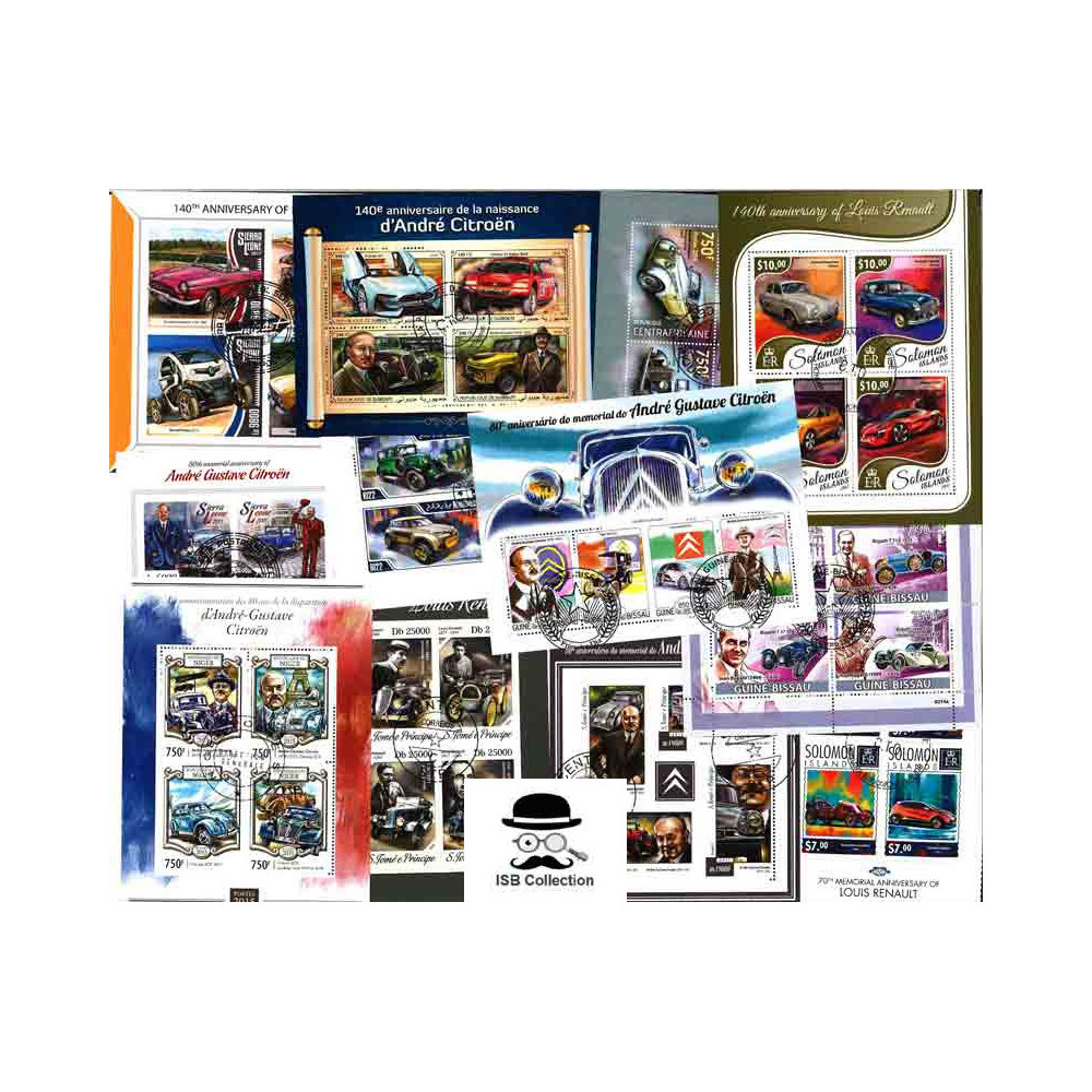 Collection de timbres poste en blocs feuillets de voitures françaises