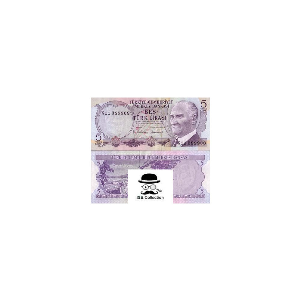 Billet de banque de turquie valeur faciale 5 lira pick 185 -