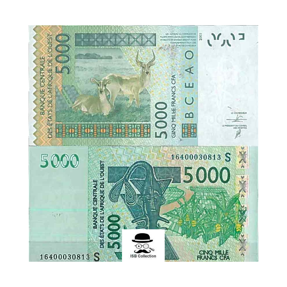 Billet de banque de afrique de l'ouest valeur faciale 5 000 francs pick 917 s-