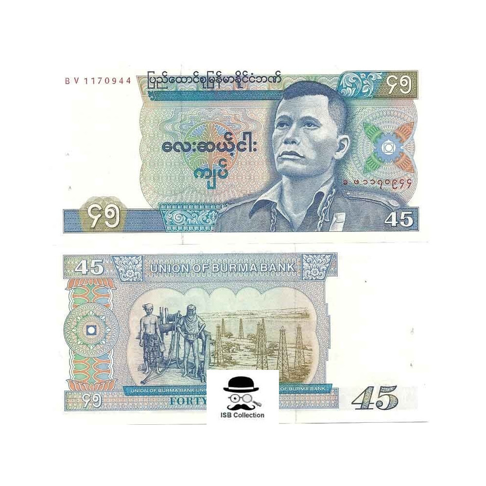 Billet de banque de myanmar valeur faciale 45 kyats pick 64 -