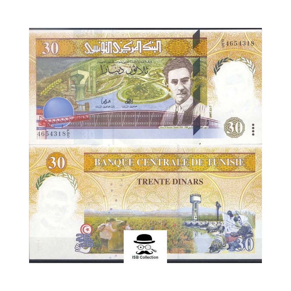 Billet de banque de tunisie valeur faciale 30 dinar pick 89 -