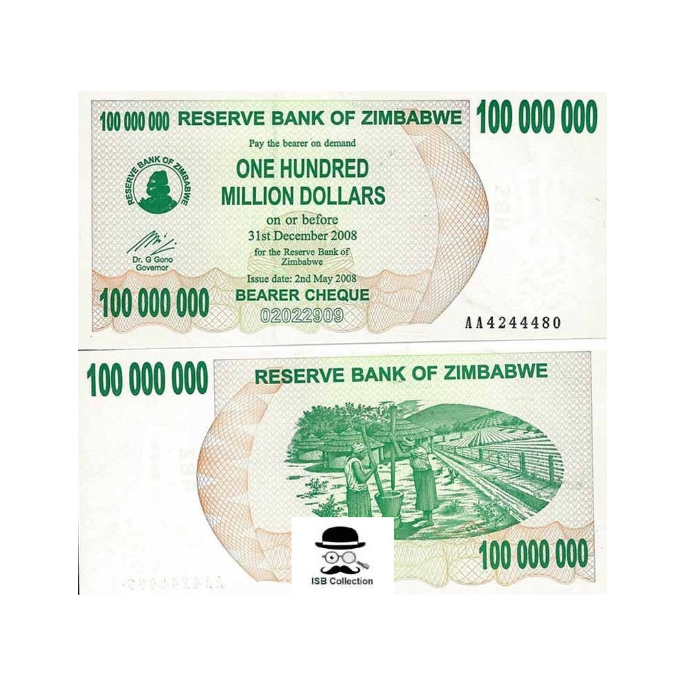 Billet de banque de zimbabwe valeur faciale 100 millions dollars bearer pick 58 -