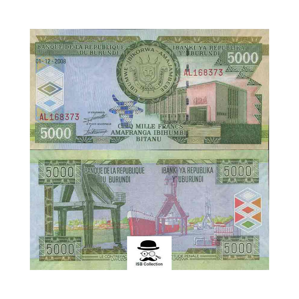 Billet de banque de burundi valeur faciale 5 000 francs pick 48 -
