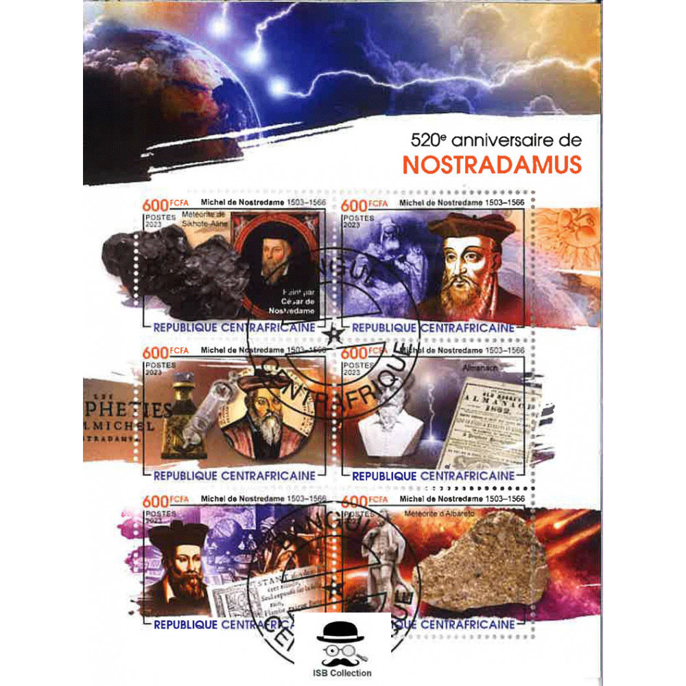 Centrafrique-célébrités-astronomes-520e anniversaire de la naissance de nostradamus- yvert n° newxxxx