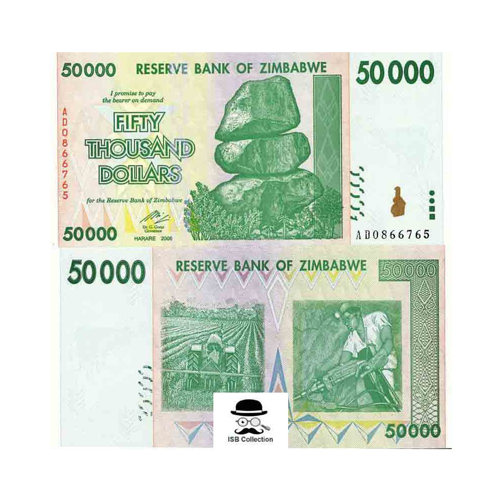 Billet de banque de zimbabwe valeur faciale 50 000 dollars pick 74 -