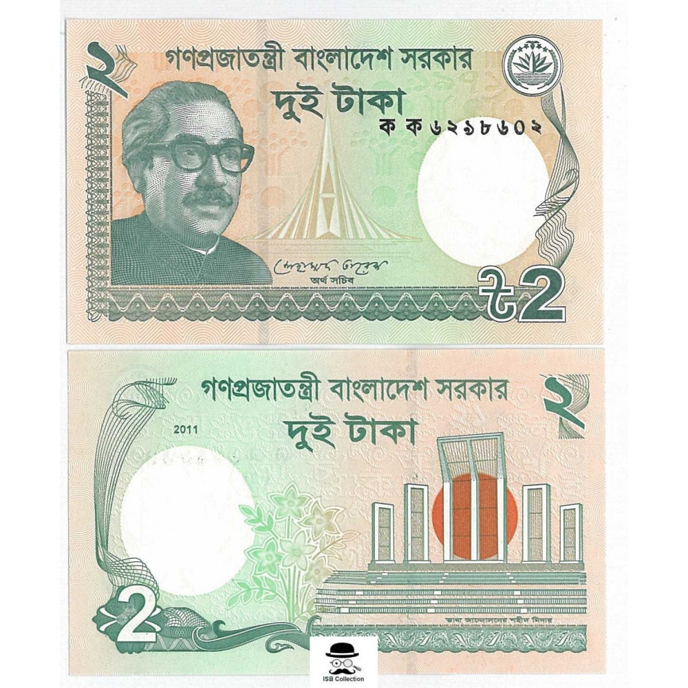 Billet de banque de bangladesh valeur faciale 2 taka pick 52 -