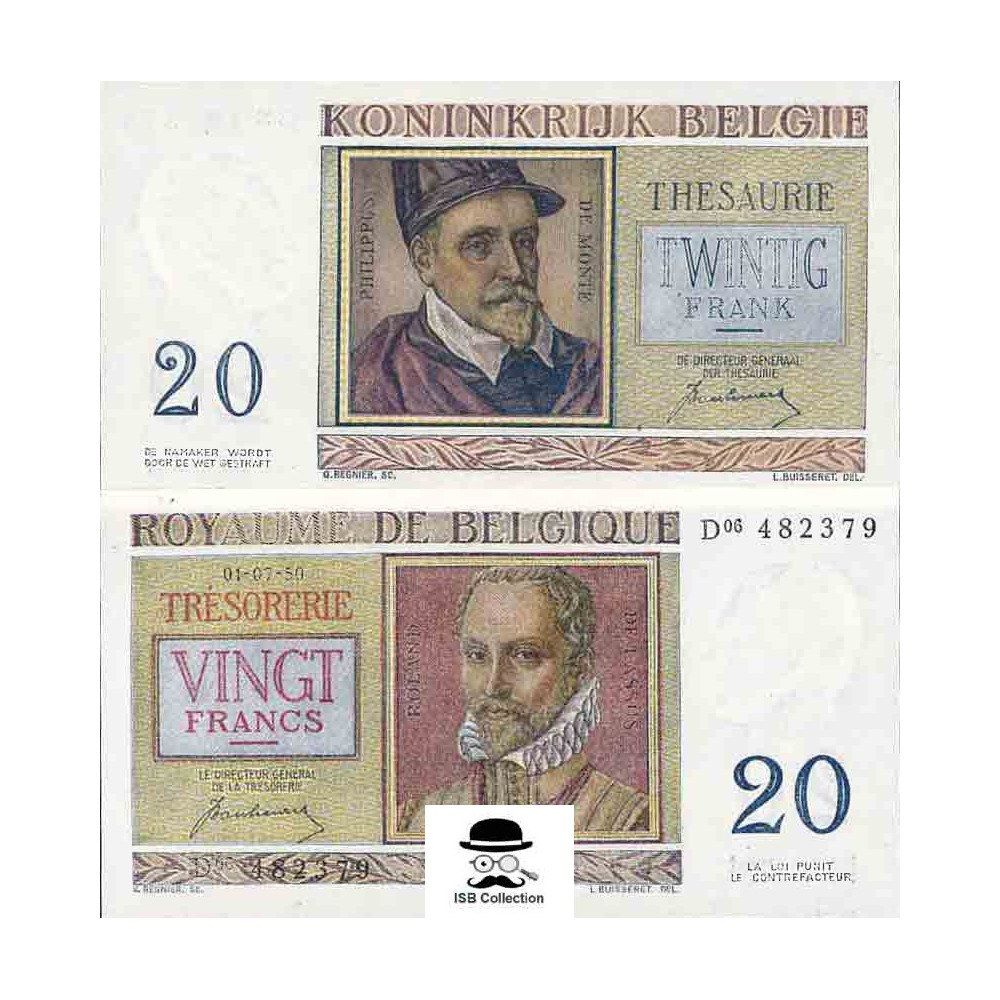 Billet de banque de belgique valeur faciale 20 francs pick 132 -